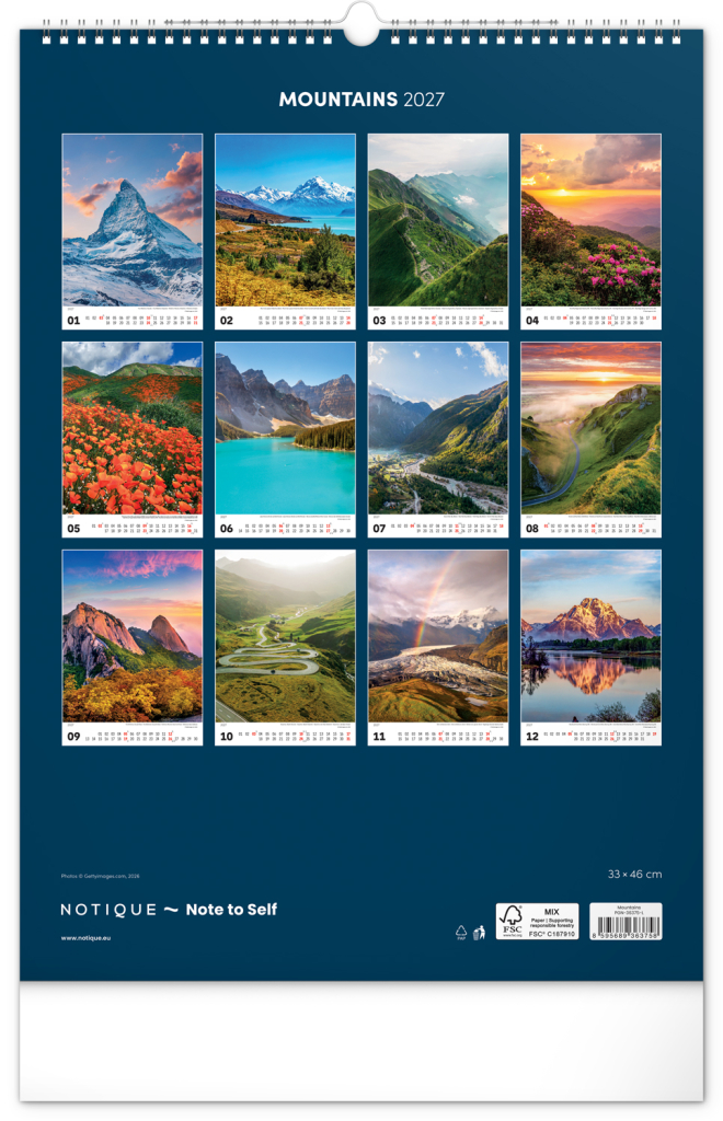NOTIQUE Nástěnný kalendář Hory 2027, 33 x 46 cm