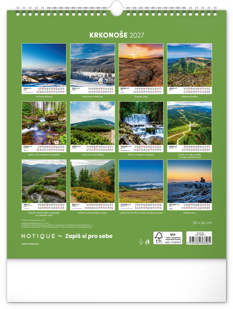 NOTIQUE Nástěnný kalendář Krkonoše 2027, 30 x 34 cm