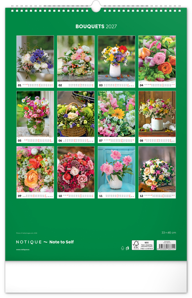 NOTIQUE Nástěnný kalendář Kytice 2027, 33 x 46 cm