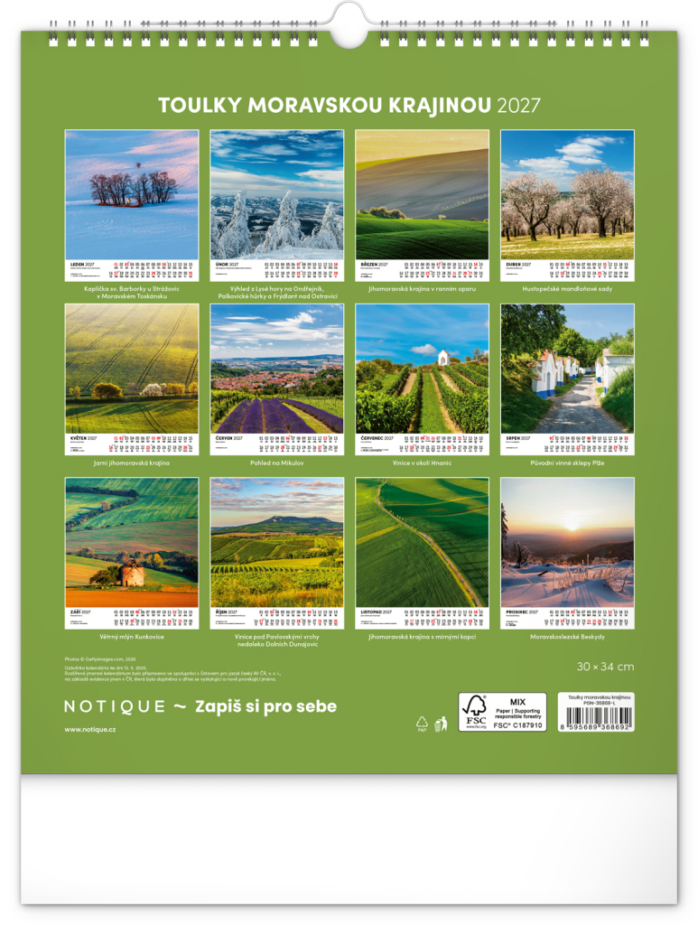 NOTIQUE Nástěnný kalendář Toulky moravskou krajinou 2027, 30 x 34 cm