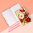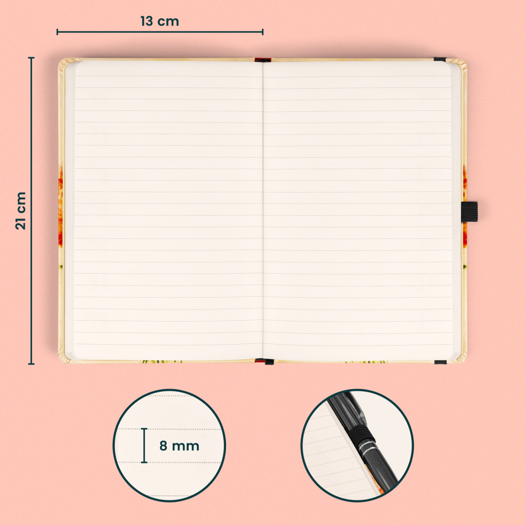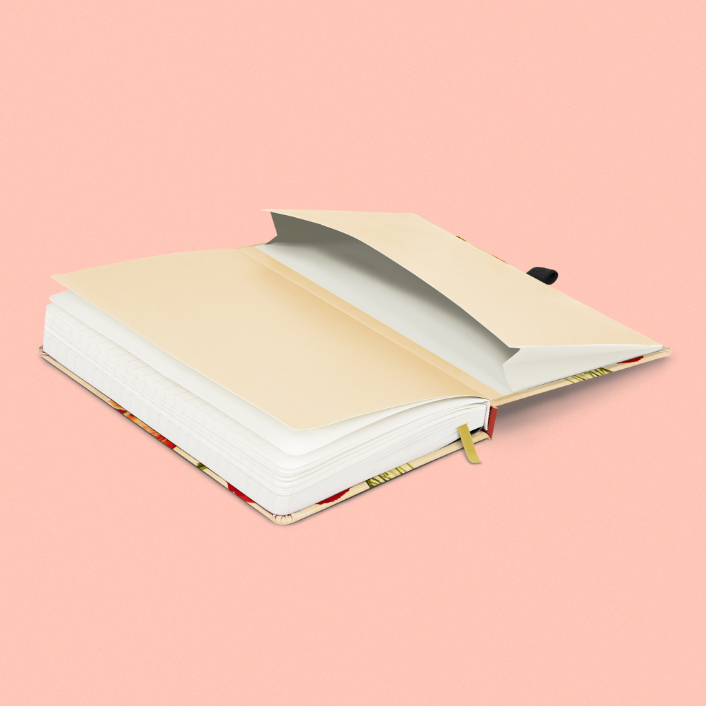 Notes v pevných deskách z kolekce Kateřiny Winterové s uzavíráním na gumičku, kapsou na drobnosti a poutkem na tužku. Uvnitř najdete 172 linkovaných stran na krémovém papíře pro zapsání všech vašich nápadů.