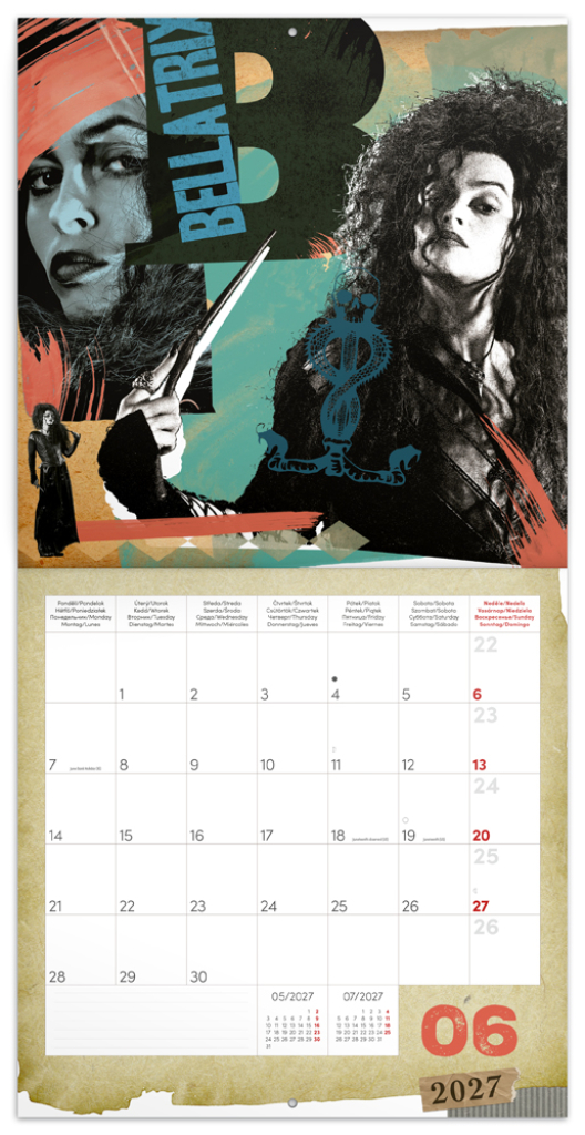 Poznámkový kalendář s dvanácti obrázky oblíbených hrdinů z kouzelnického světa obsahuje také přehled čtyř posledních měsíců roku 2026, osmijazyčné kalendárium na rok 2027 s mezinárodními svátky, měsíční fáze, a prostor pro poznámky na každý den.| EAN | 8595689363451 |