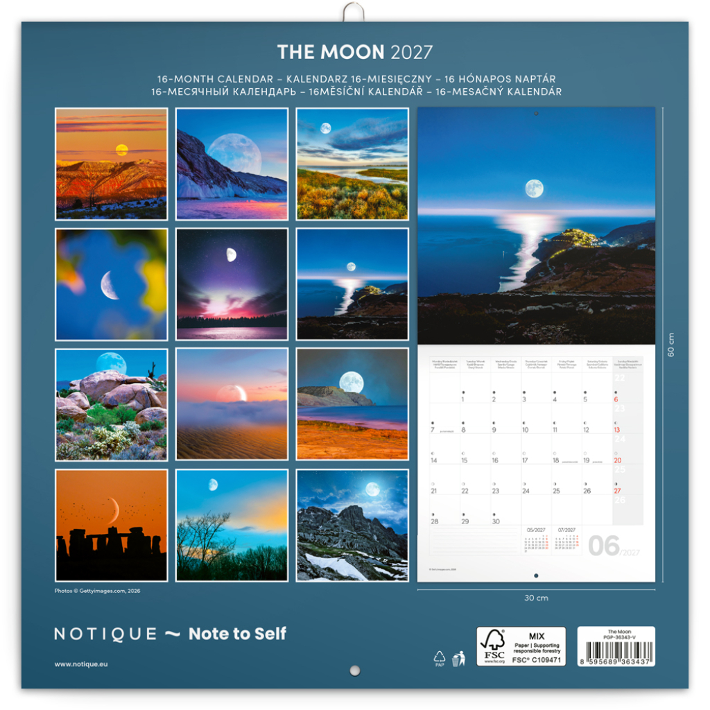NOTIQUE Poznámkový kalendář Měsíc 2027, 30 x 30 cm