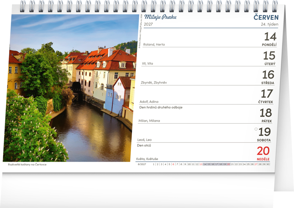 NOTIQUE Stolní kalendář Praha – Miluju Prahu 2027, 23,1 x 14,5 cm
