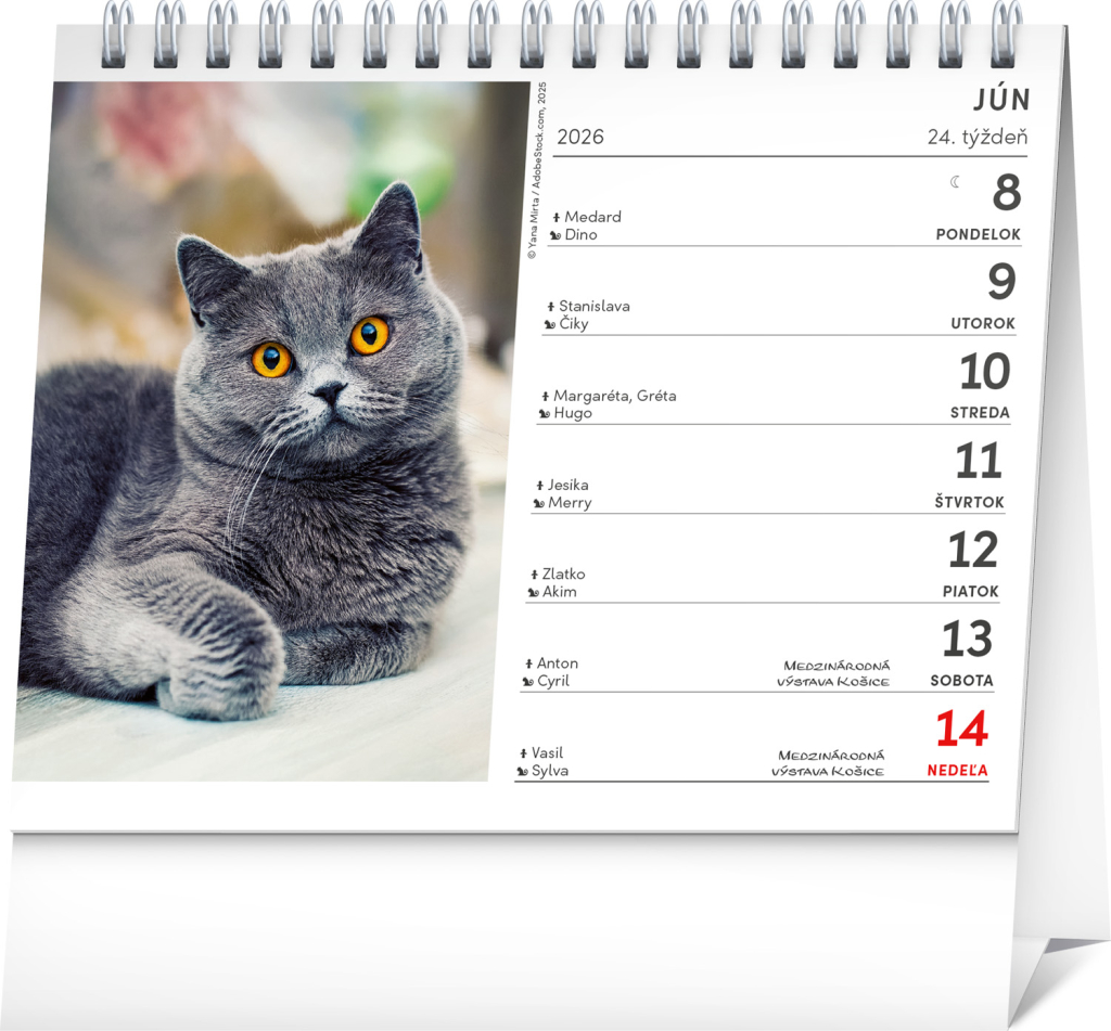 Oslavte svátek spolu se svým kočičím parťákem – v tomto praktickém slovenském stolním kalendáři najdete jména koček na každý den. V kalendáři najdete hezké fotografie a prostor na poznámky.| EAN | 8595689353629 |
