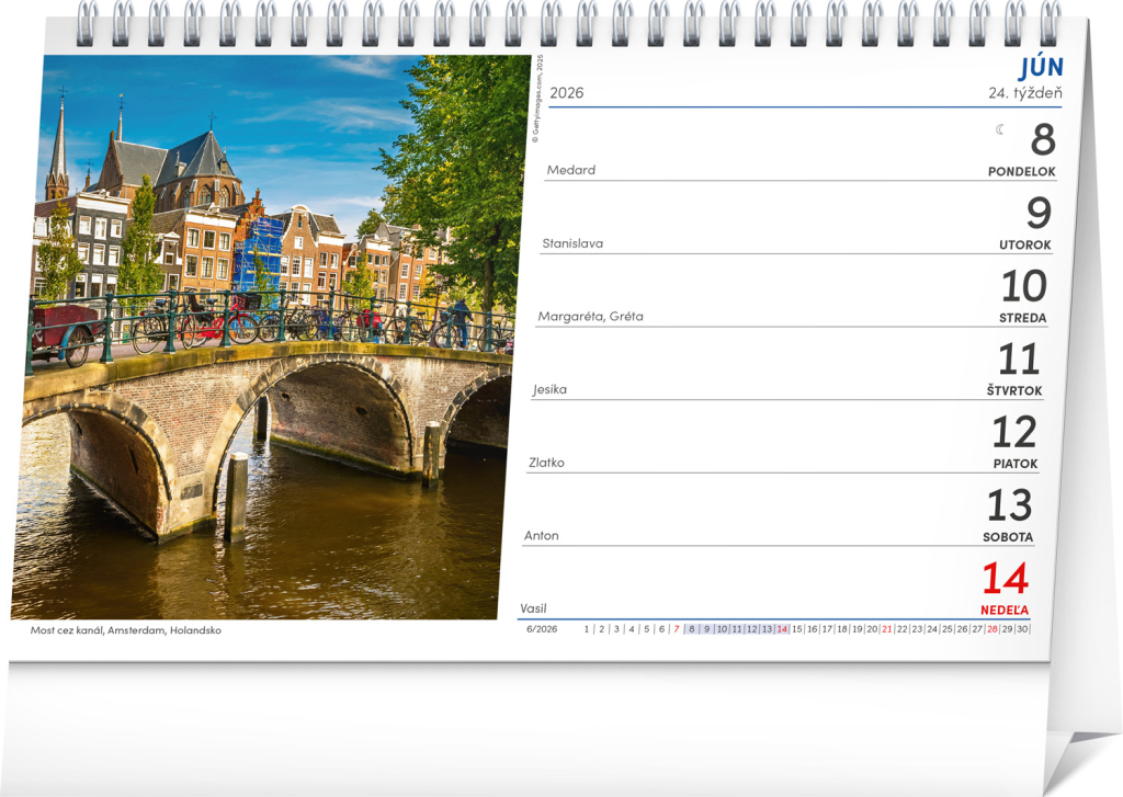 Praktický stolní kalendář s 53 fotografiemi těch nejkrásnějších a nejzajímavějších koutů celého světa. Procestujte svět křížem krážem a podívejte se na místa, která běžně nespatříte. Navštivte světové metropole i zapadlé vesničky, aniž byste museli utrácet za dovolenou. Stolní kalendář se slovenským kalendáriem obsahuje svátky a památné dny, měsíční fáze a přehled na celý rok 2026 a 2027.| EAN | 8595689353551 |