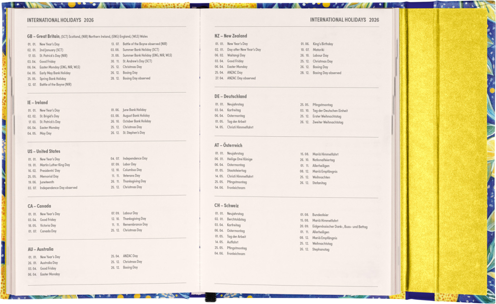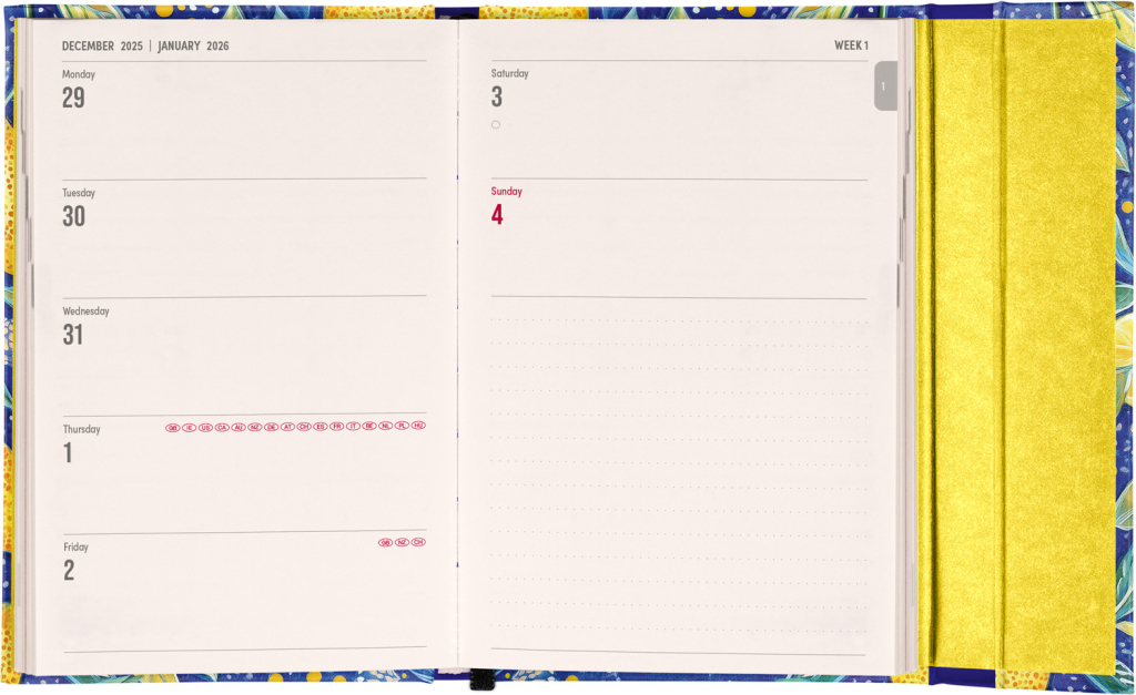 Týdenní diář v anglickém jazyce s mezinárodními svátky a praktickým magnetickým uzavíráním je ideální volbou pro ty, kteří chtějí mít své plány přehledně pod kontrolou. Nabízí horizontální rozložení ve verzi týden na dvou stranách s prostorem pro poznámky. Součástí jsou praktické měsíční přehledy, ideální pro plánování dovolených či prázdnin.| EAN | 8595689355487 |