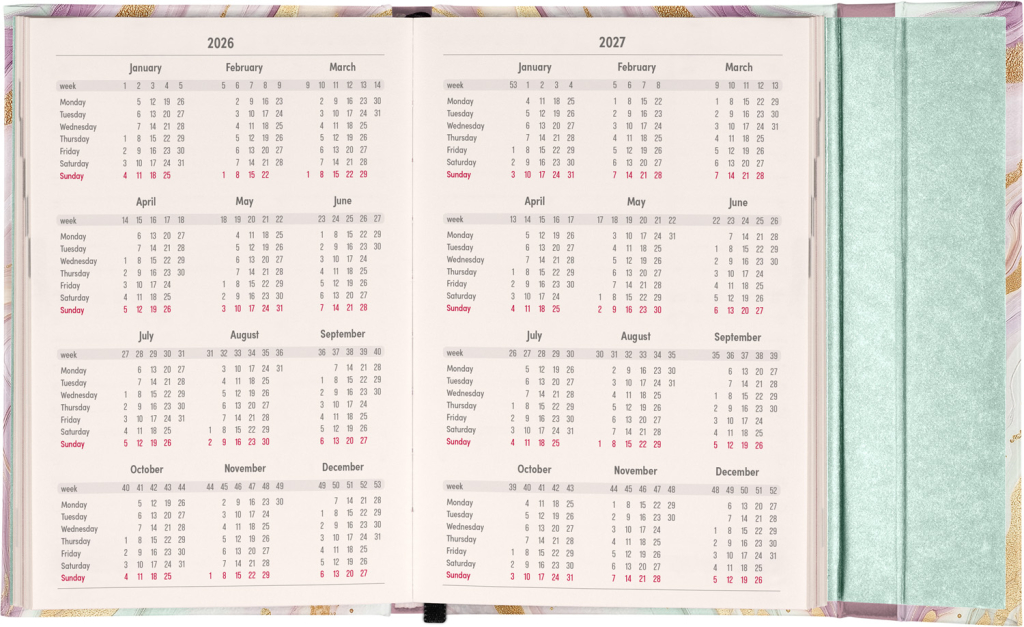 NOTIQUE Týdenní magnetický diář Růžový mramor 2026, 11 x 16 cm