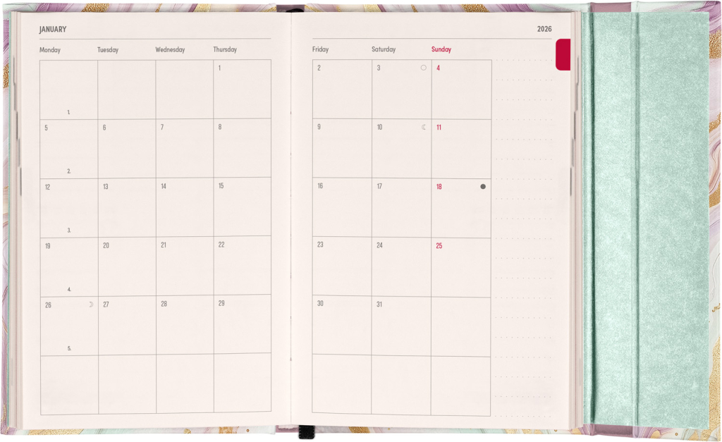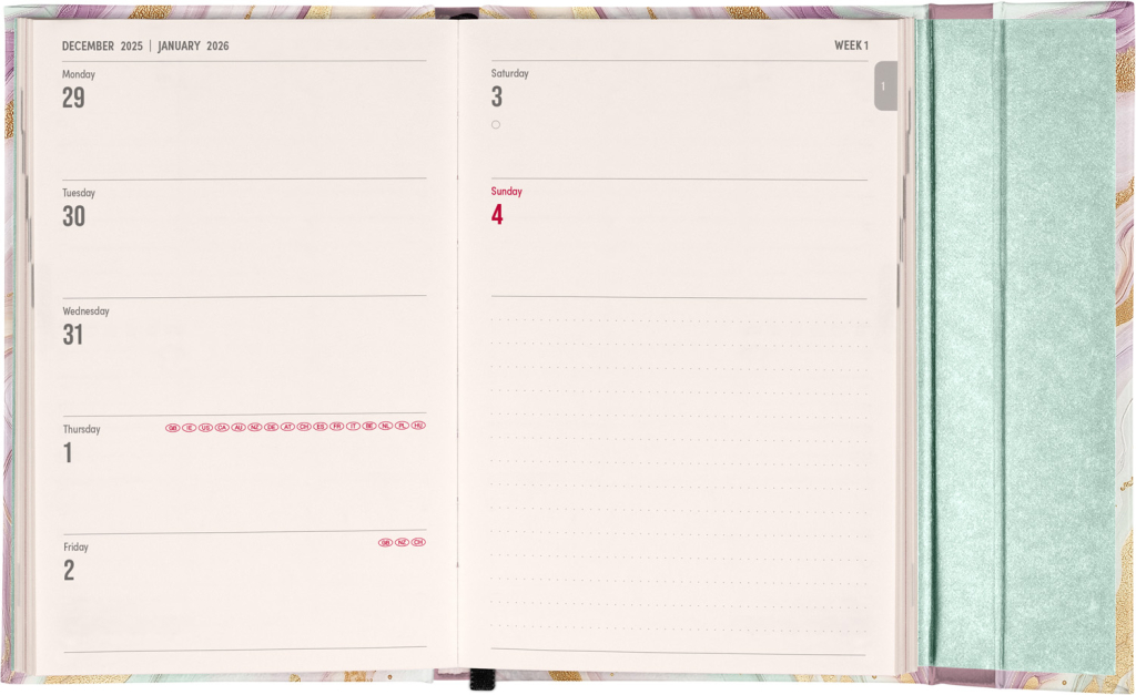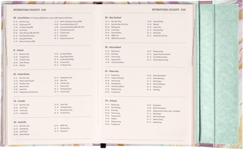Týdenní diář v anglickém jazyce s mezinárodními svátky a praktickým magnetickým uzavíráním je ideální volbou pro ty, kteří chtějí mít své plány přehledně pod kontrolou. Nabízí horizontální rozložení ve verzi týden na dvou stranách s prostorem pro poznámky. Součástí jsou praktické měsíční přehledy, ideální pro plánování dovolených či prázdnin.| EAN | 8595689355449 |