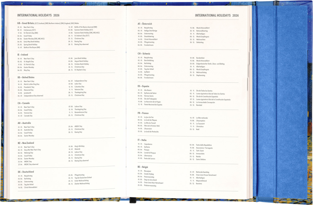 Týdenní diář v anglickém jazyce s mezinárodními svátky a praktickým magnetickým uzavíráním je ideální volbou pro ty, kteří chtějí mít své plány přehledně pod kontrolou. Nabízí sloupcové rozvržení jednotlivých týdnů s dostatkem prostoru pro každodenní poznámky. Součástí jsou praktické měsíční přehledy, ideální pro plánování dovolených či prázdnin.| EAN | 8595689356842 |