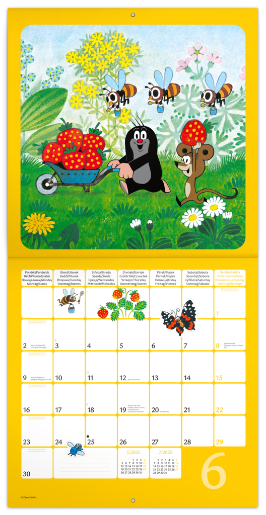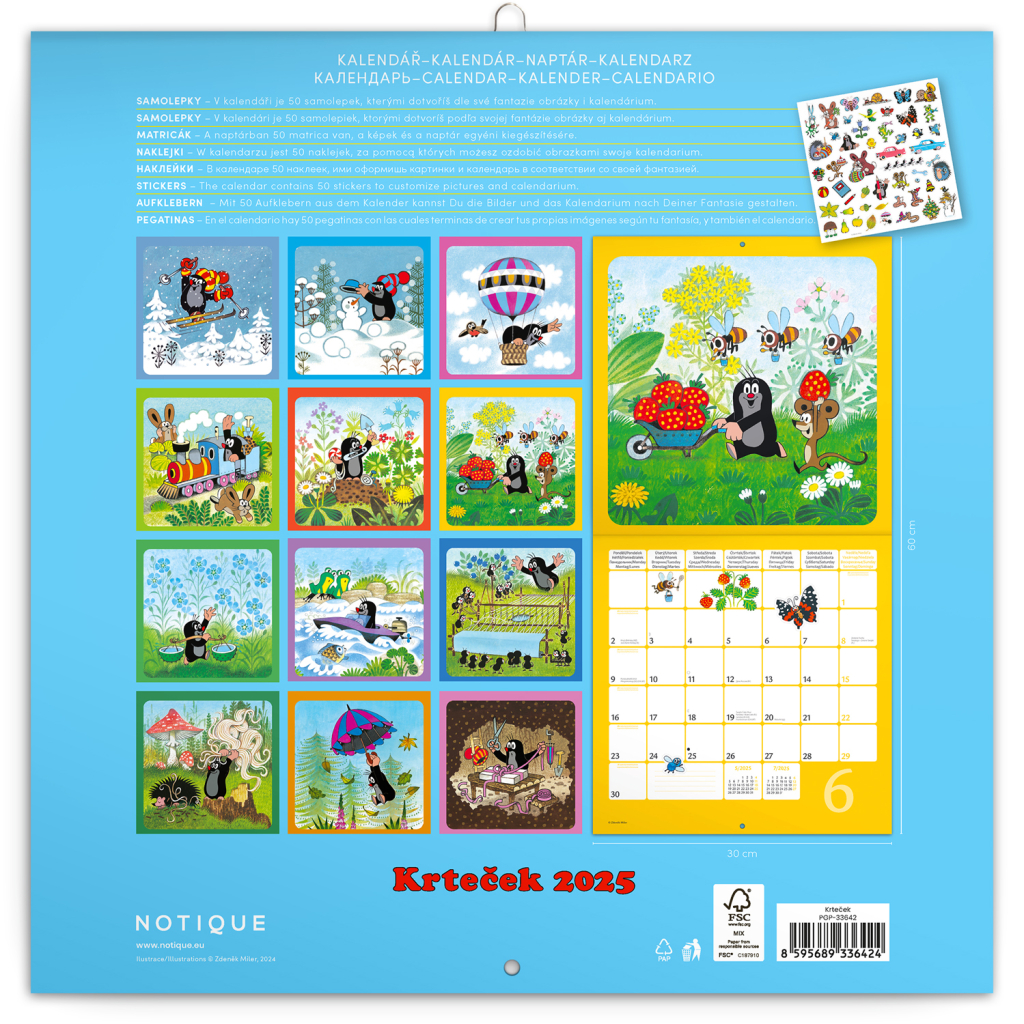 NOTIQUE Poznámkový kalendář Krteček 2025, s 50 samolepkami, 30 x 30 cm