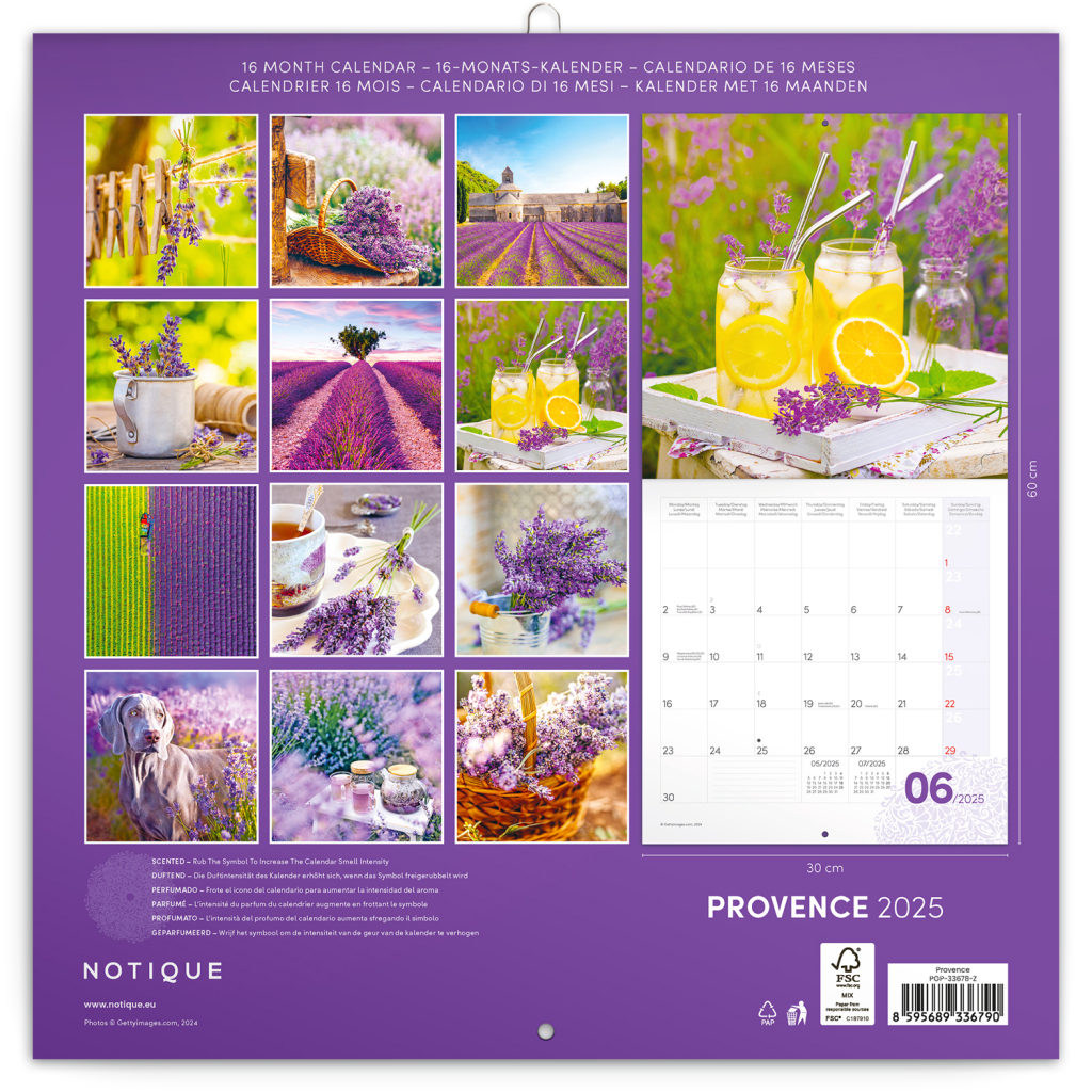 NOTIQUE Poznámkový kalendář Provence 2025, voňavý, 30 x 30 cm