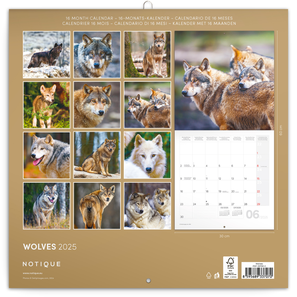 NOTIQUE Poznámkový kalendář Vlci 2025, 30 x 30 cm