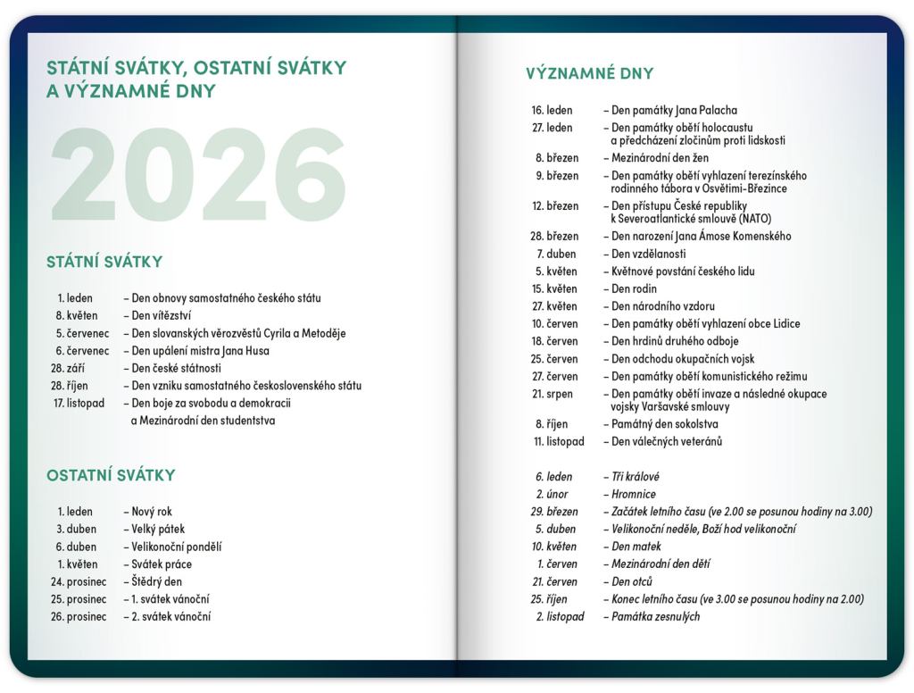 NOTIQUE Školní diář Zelený (září 2025 – prosinec 2026), 9,8 x 14,5 cm