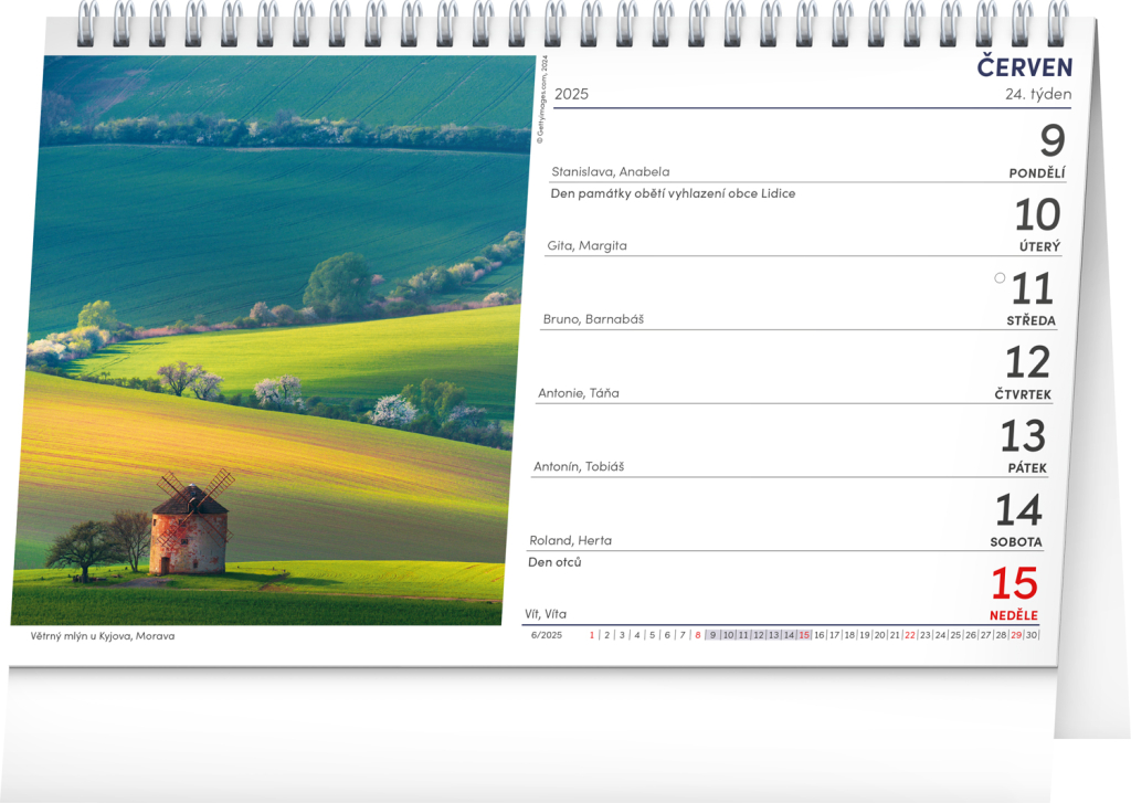 Hory i doliny z celé České republiky v třiapadesáti obrazech. Stolní kalendář s českým kalendáriem obsahuje svátky a památné dny, fáze měsíce a přehled na celý rok.