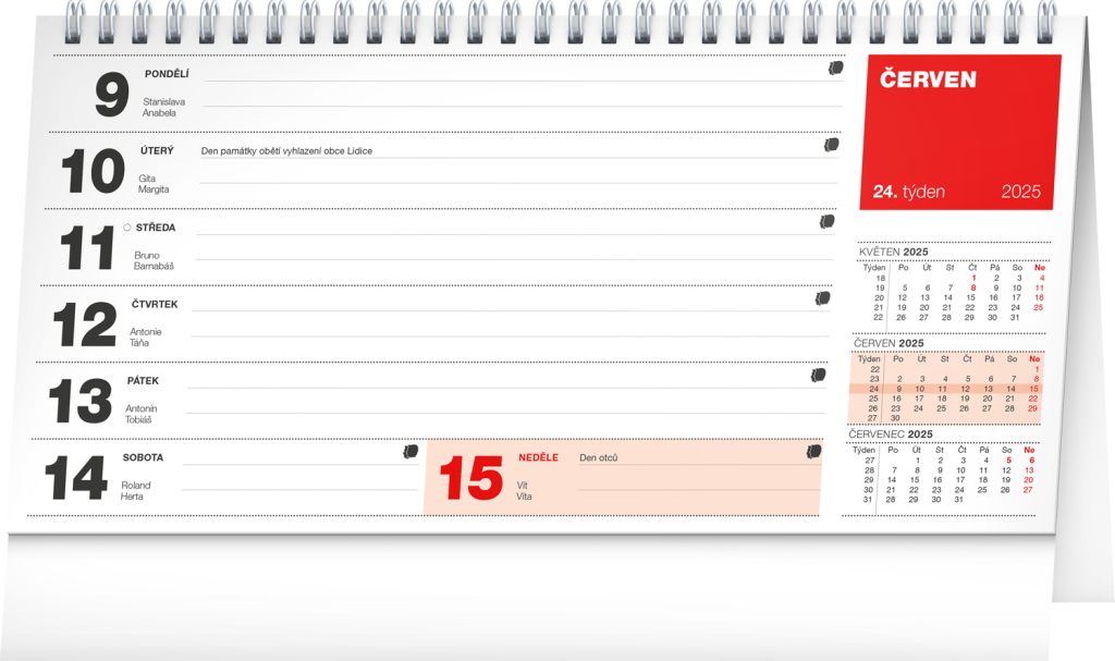 Stolní kalendář s řádkovým kalendáriem pro vaše všední i nevšední plány. Vše přehledně a na jednom místě. Dostatek místa na poznámky a praktičnost je u tohoto kalendáře naprostou samozřejmostí.