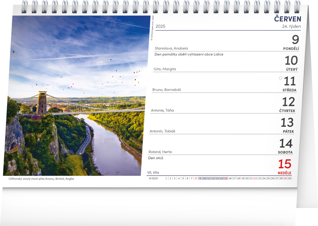 Praktický stolní kalendář s 53 fotografiemi těch nejkrásnějších a nejzajímavějších koutů celého světa. Procestujte svět křížem krážem a podívejte se na místa, která běžně nespatříte. Navštivte světové metropole i zapadlé vesničky, aniž byste museli utrácet za dovolenou. Stolní kalendář s českým kalendáriem obsahuje svátky a památné dny, fáze měsíce a přehled na celý rok 2025 a 2026.