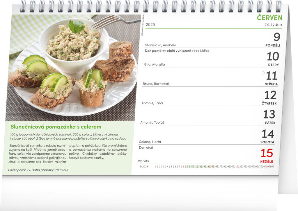 Rozhodli jste se udělat něco pro své tělo a zdraví? Nabízíme vám 53 receptů, díky kterým se brzy budete cítit fit. Zdravý životní styl jde ruku v ruce s přesným plánováním, ke kterému vám dopomůže týdenní kalendárium s prostorem pro poznámky, svátky, památnými dny, fázemi měsíce a přehledem na celý rok 2025 a 2026.