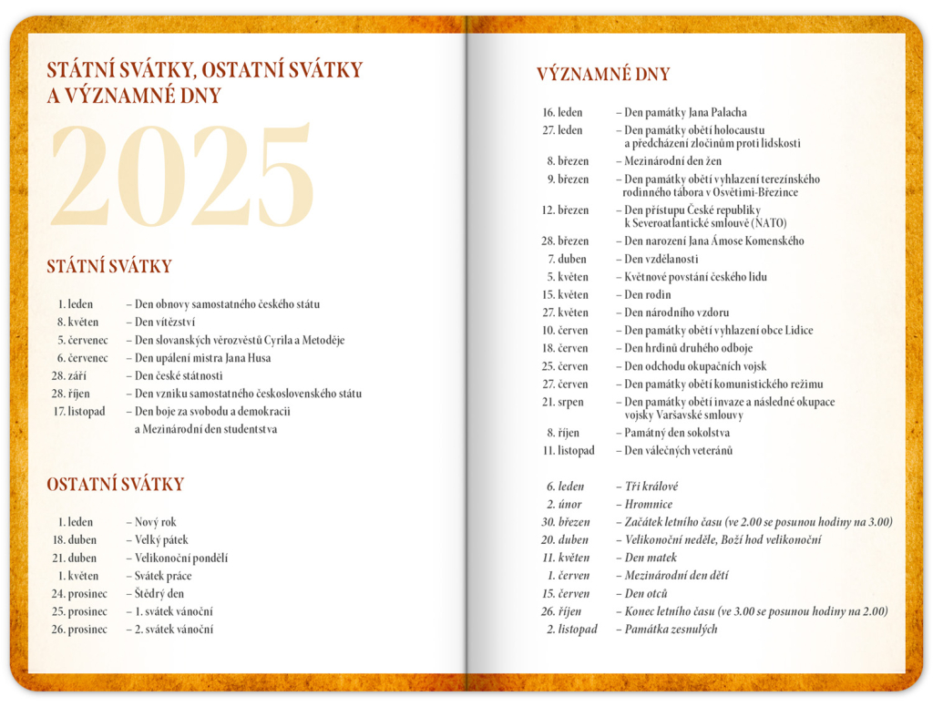 Studentský diář s oblíbeným motivem Harryho Pottera obsahuje přehled na rok 2025 a 2026, české týdenní řádkové kalendárium se jmény a svátky, rozvrh hodin, prostor na poznámky a základní poznatky z matematiky, fyziky, chemie a angličtiny pro studenty. Kalendárium začíná v září 2025 a končí v prosinci 2026.