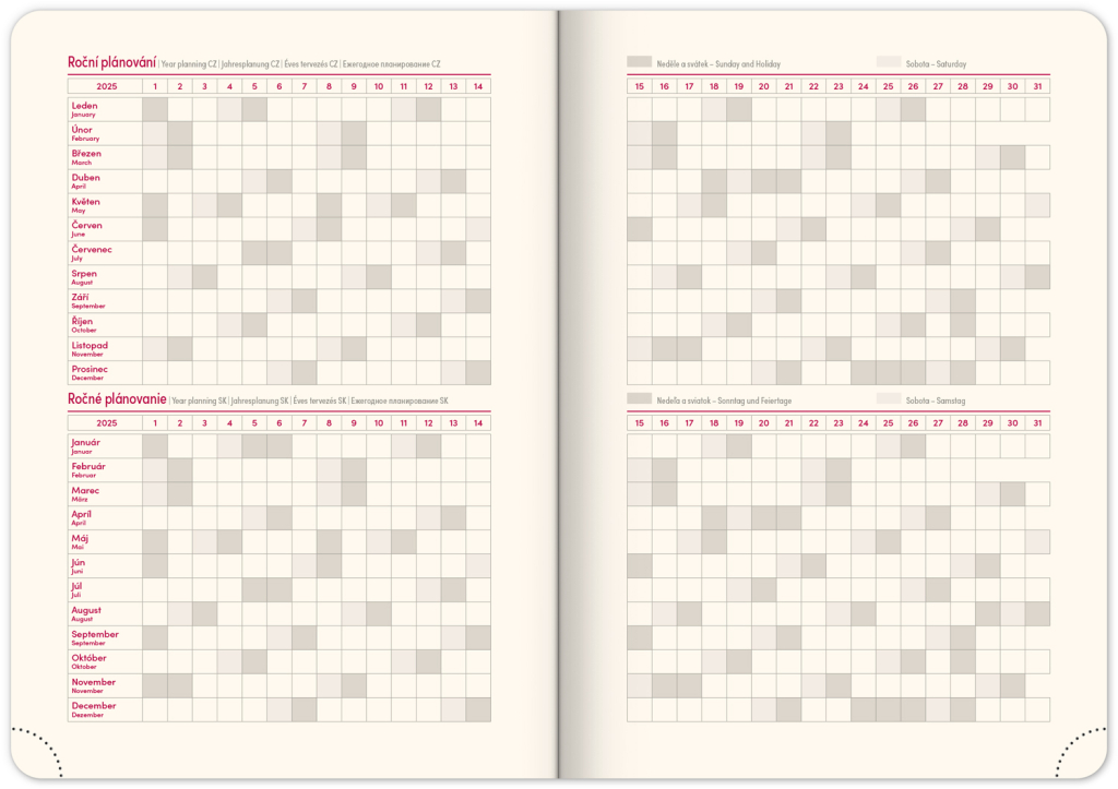 NOTIQUE Týdenní diář Twill 2025, modro-stříbrný, 15 x 21 cm