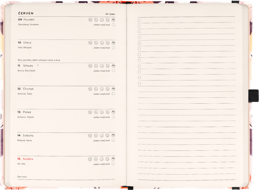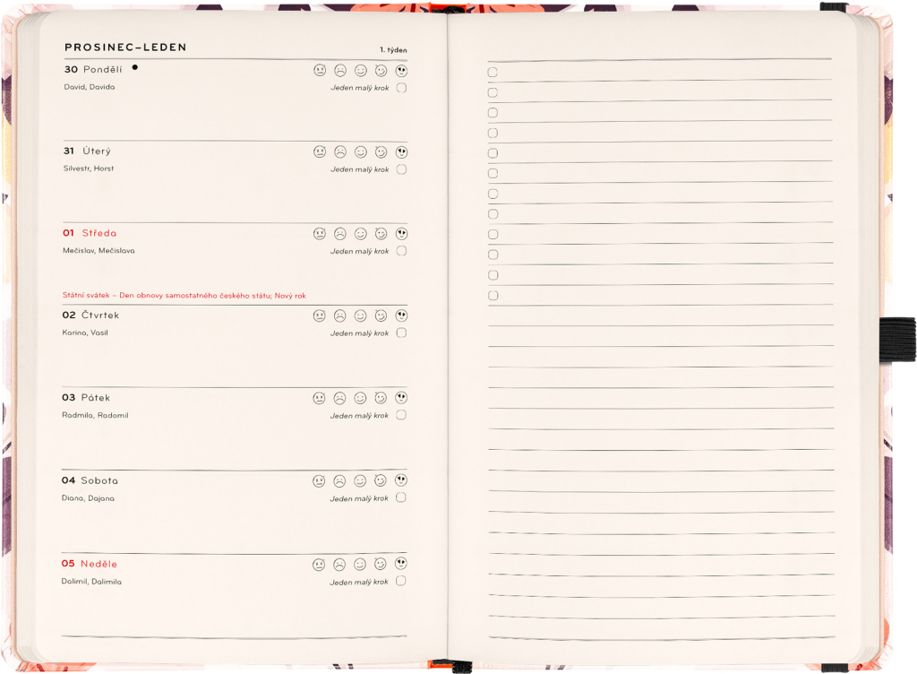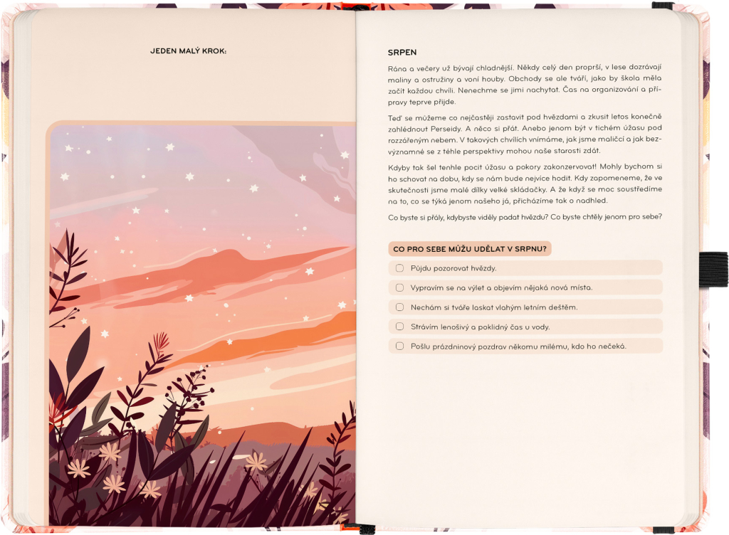 Laskavý diář vás provede cestou k vyváženému a pozitivnějšímu roku. Každý měsíc přináší motivační texty laděné podle aktuálního období, inspirativní aktivity a prostor pro stanovení malých cílů. Týdenní kalendárium doplňuje měsíční přehled na začátku každého měsíce, náladoměr a dostatek místa pro všechny vaše poznámky a plány.