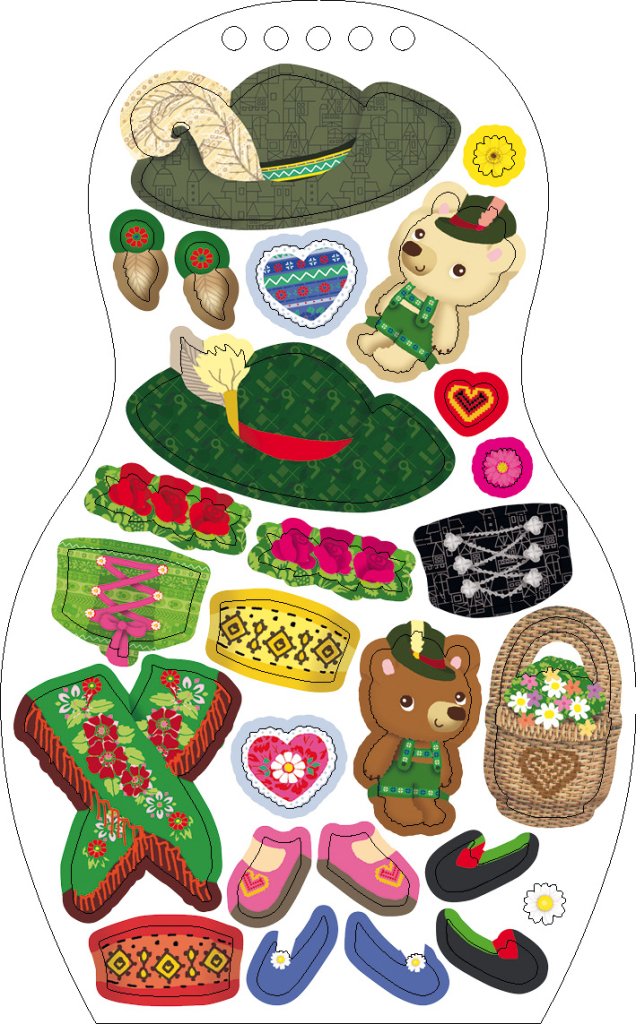 Další titul oblíbené série, která našla své obdivovatele v desítkách zemí světa, představuje malým čtenářům kouzlo Německa prostřednictvím panenky Hanny. Kreativní omalovánky, spousta samolepek… knížka obsahuje vše, co je třeba k vytvoření nesčetných modelů podle německé módy. A k tomu se děti dočtou i spoustu zajímavých informací navrch! Jak se jejich vrstevníci v Německu zdraví, jak se tam učí, na jakých specialitách si pochutnávají? Víte, co je to šukrut nebo jak vypadá dirndl? To a ještě mnohem víc se dozvíte, vydáte-li se za poznáním s našimi panenkami. A ke každé knížce dostanete krásný náramek pro štěstí!