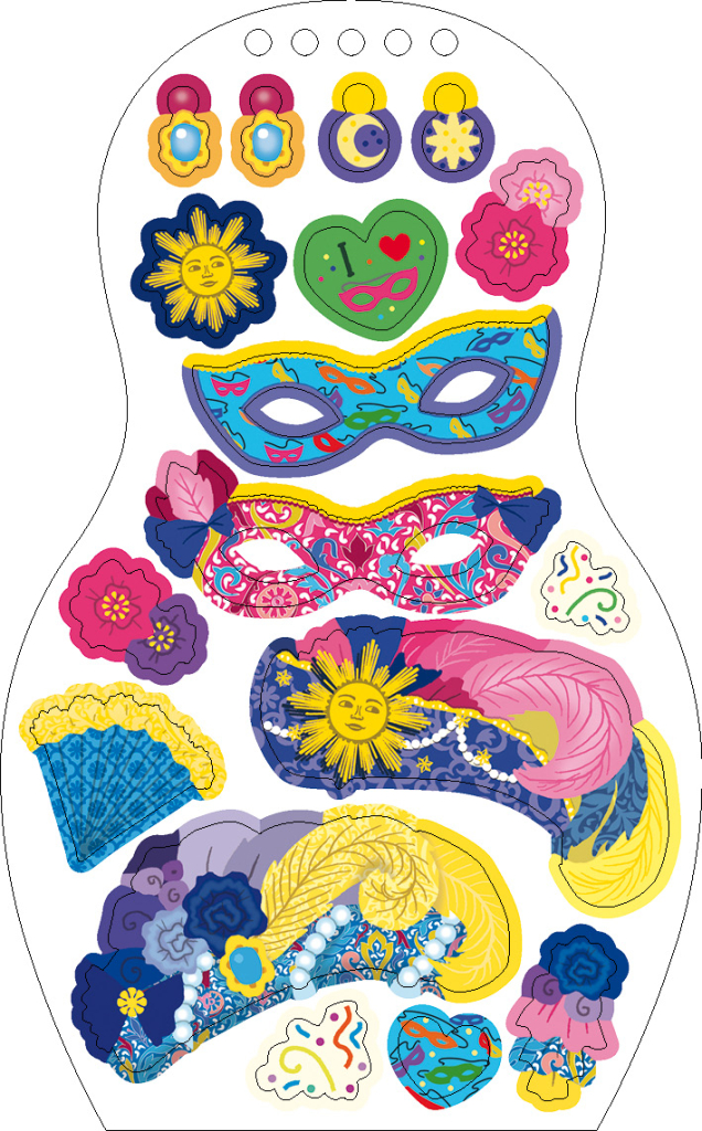 Další titul oblíbené série, která našla své obdivovatele v desítkách zemí světa, představuje malým čtenářům modely, které se oblékají na karnevaly konané v různých koutech světa. Kreativní omalovánky, spousta samolepek… knížka obsahuje vše, co je třeba k vytvoření nesčetných rób na karneval. A k tomu se děti dočtou i spoustu zajímavých informací navrch! Kdy a kde se konají nejznámější světové karnevaly, jak probíhá karnevalové veselí, průvody a další akce spojené s těmito událostmi? To a ještě mnohem víc se dozvíte, vydáte-li se za poznáním s našimi panenkami. A ke každé knížce dostanete krásný náramek pro štěstí!
