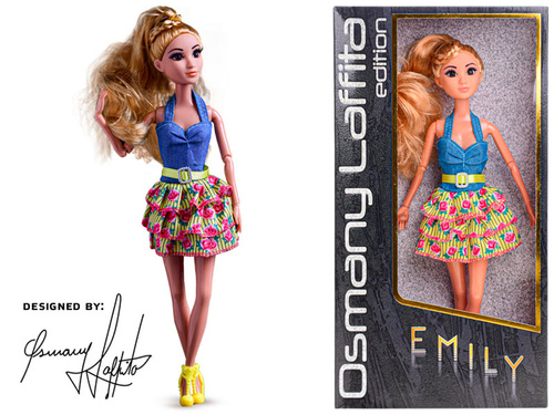 Emily je jednou z limitované edice kloubových panenek navržené módním návrhářem Osmanym Laffitou. Panenka má detailně propracovaný obličej a od ostatních panenek se liší s osobitým stylem. Emily nachází potěšení v cestování a poznávání různých kultur. Je 31cm vysoká, může otáčet hlavičkou, hýbat pasem, nohama, rukama v ramenou, v loktech a v zápěstí. Díky její ohebnosti se snadno obléká a můžete tak nastavit ideální postoj podle svých představ. Blondýnka Emily je oblečená do krásných letních šatiček s pestrými barvami, které zdobí žlutý pásek se stříbrnou sponou a obuta je do žlutých lodiček. Panenka Emily od Osmanyho udělá jistě radost každé slečně.