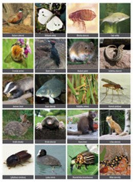 - Obsahuje celkem 5 velkých fotografií ekosystémů (les, louka, voda, pole, okolí lidských obydlí) a 80 malých fotografií živočichů, rostlin a hub s jejich názvy.