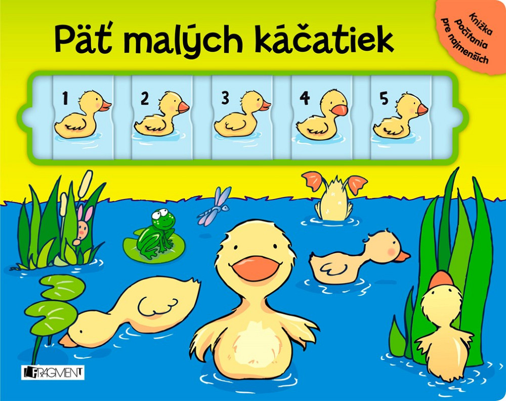 Mamičke kačičke sa niekam zatúlalo päť malých nezbedných káčatiek. Pomôžeš jej ich nájsť? Porozprávaj riekanku, posúvaj po jednom okienku s káčatkami a nauč sa počítať do päť!