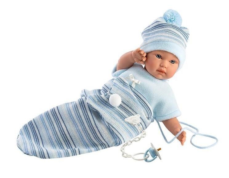 Mluvící miminko s měkkým látkovým tělem, které po zatlačení na hrudník začne říkat „mama“, „papa“ a vydávat reálný zvuk plačícího miminka. Velikost 30 cm. Součástí balení je 3 x knoflíková baterie LR44.