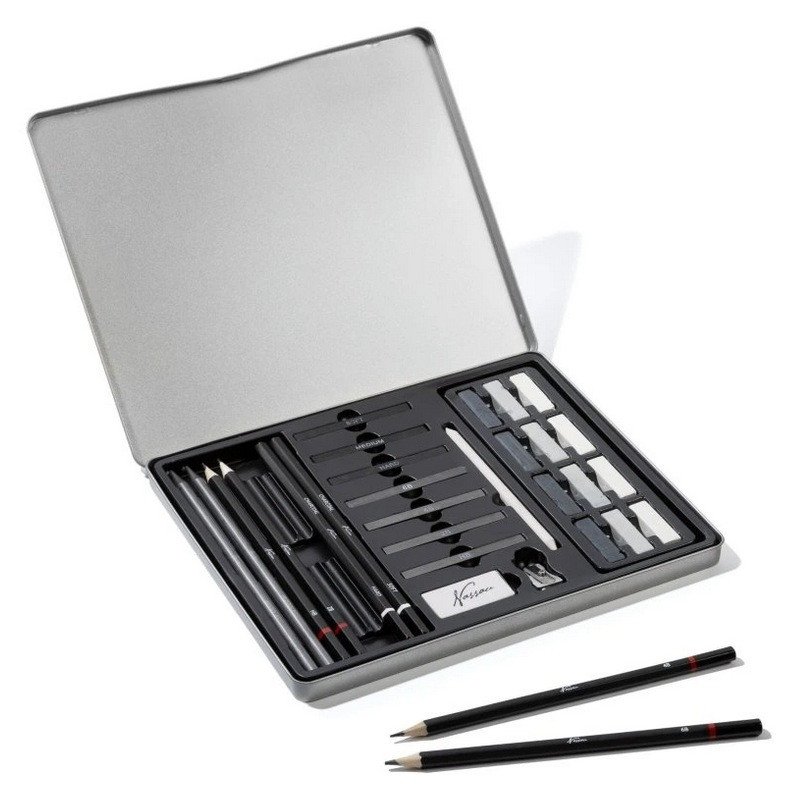 Profesionální skicovací sada Nassau Fine Art (30 ks) obsahuje grafitové tužky, uhly a doplňky pro kreslení a stínování. Ideální pro začátečníky i pokročilé umělce.