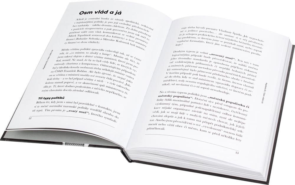 Kniha, která přišla na svět během autorovy „postguvernérské velké dovolené“ a připomíná důležité události i významné osobnosti ekonomického, politického a společenského světa posledních třiceti let. Nabízí mimo jiné guvernérův pohled na tři české prezidenty, většinu polistopadových premiérů či hvězdy světového i domácího bankovního nebe. Vedle toho Miroslav Singer píše otevřeně o svém soukromí: o oblíbené hudbě, vztahu k vínu nebo o tom, jak se pere s nadváhou. Ve zvláštní kapitole vysvětluje, proč centrální banka pod jeho vedením přistoupila k oslabení národní měny.