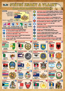 Úplný přehled státních znaků a vlajek 256 států a závislých území. U každého státu je navíc uveden oficiální název, hlavní město, status, členství v mezinárodních organizacích a světadíl, ve kterém se nachází. Zadní strana obsahuje mapky karibské a tichomořské oblasti.