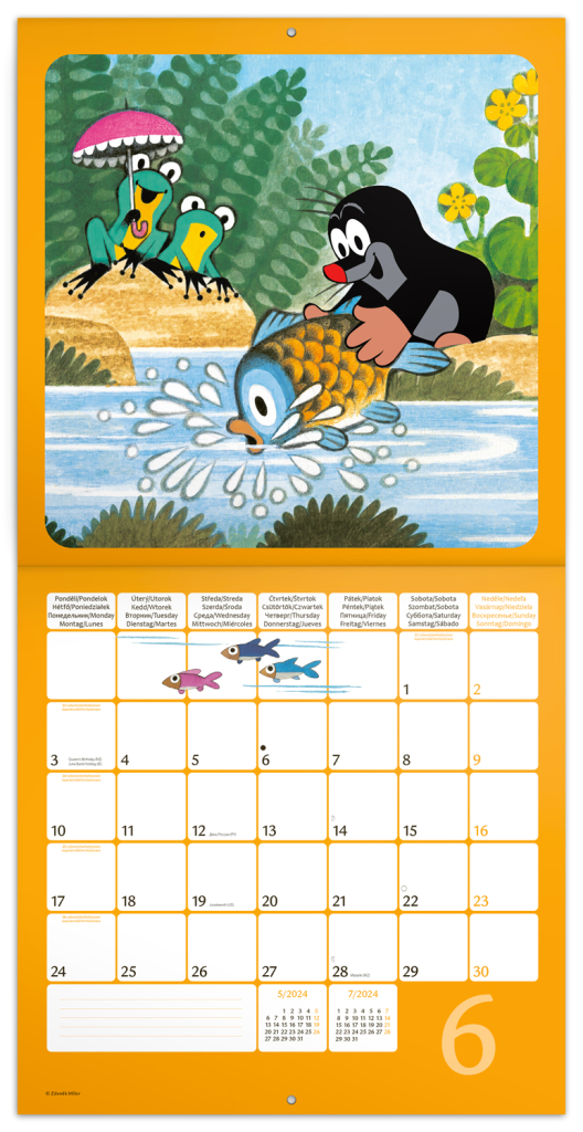Poznámkový kalendář Krteček 2024, s 50 samolepkami, 30 × 30 cm