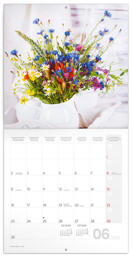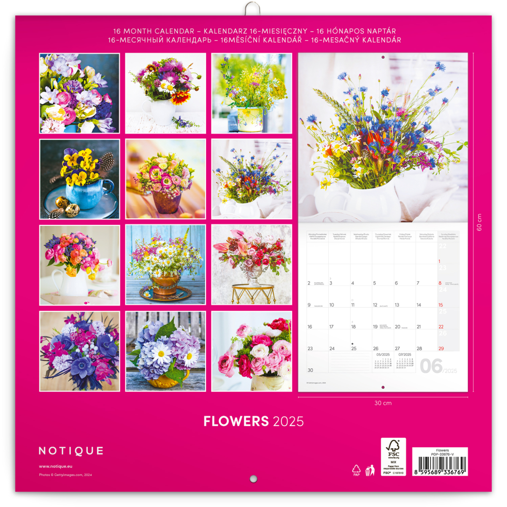 NOTIQUE Poznámkový kalendář Květiny 2025, 30 x 30 cm