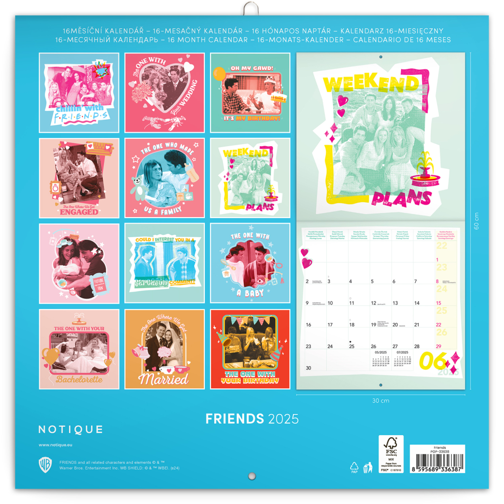 NOTIQUE Poznámkový kalendář Přátelé 2025, 30 x 30 cm