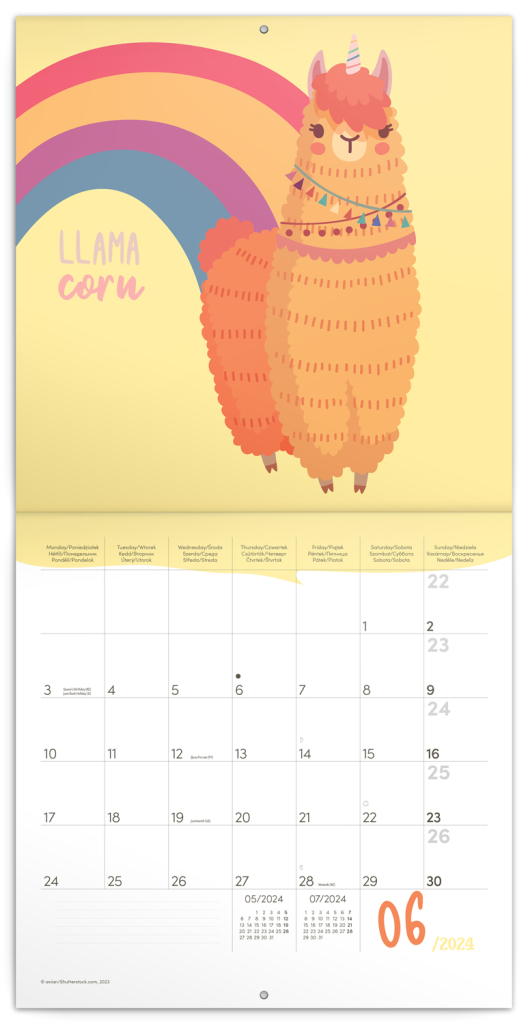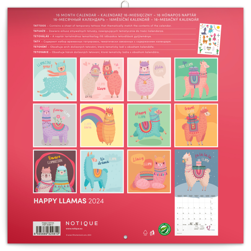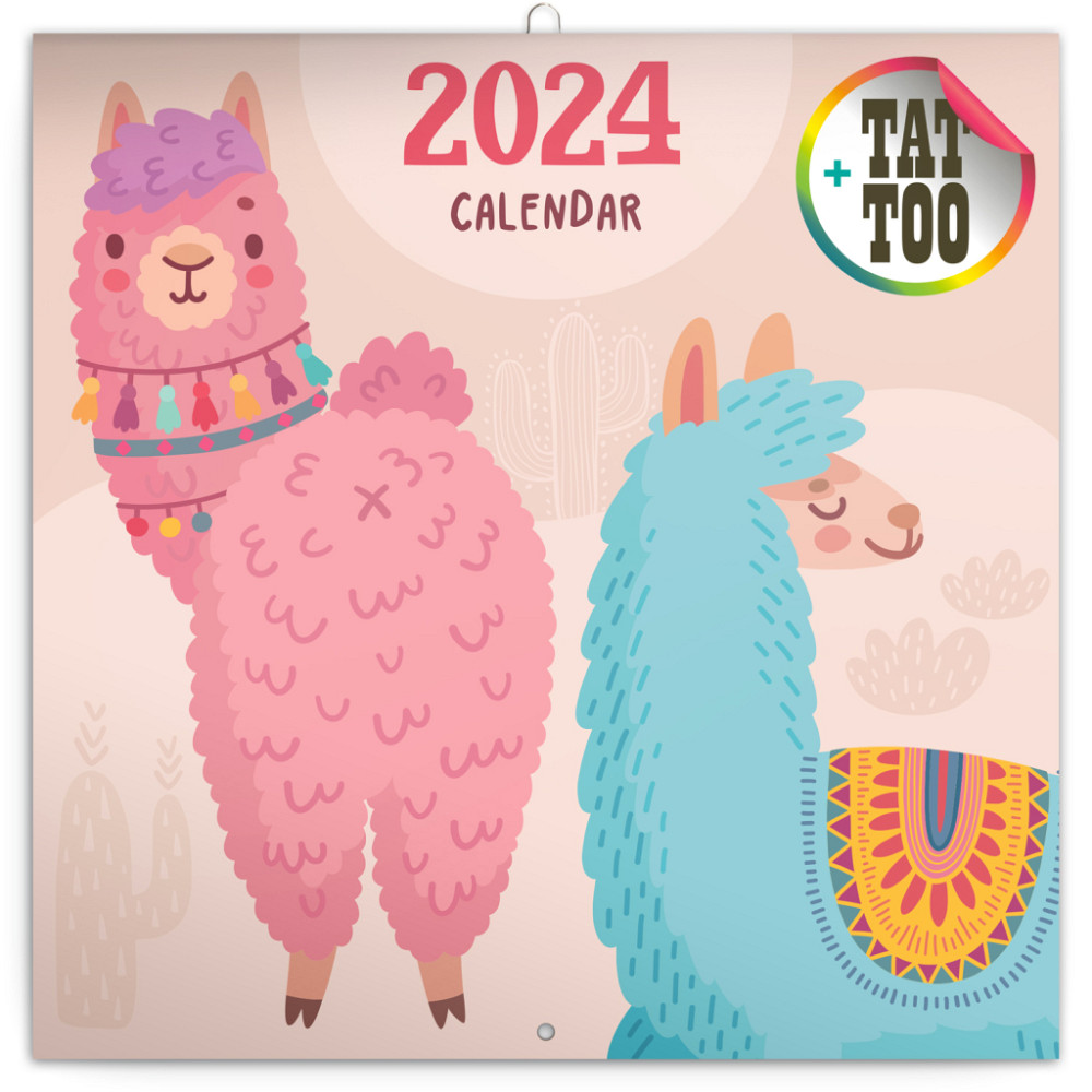Poznámkový kalendář Šťastné lamy 2024, 30 × 30 cm