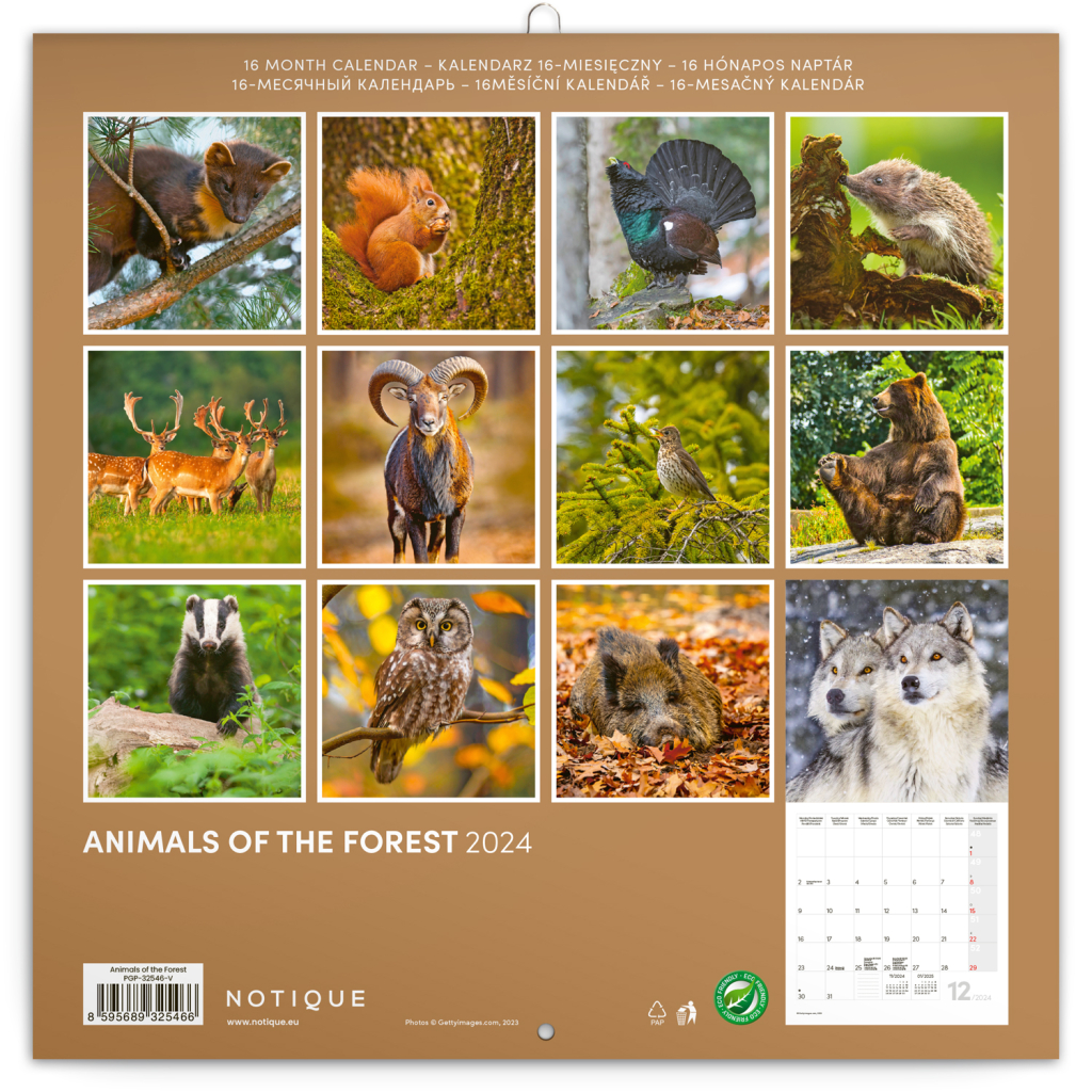 Poznámkový kalendář Zvířátka z lesa 2024, 30 × 30 cm