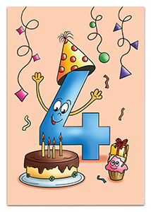 Blahopřání ke 4.roku s dortem. Přání je vevnitř zdobeno motivy z titulní strany s textem Všechno nejlepší k narozeninám!. Baleno v bílé obálce. Rozměr 19,5x13,5cm.