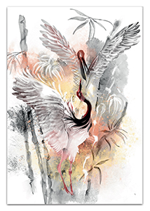 Blahopřání malované akvarel - jeřábi. Přání je vevnitř zdobeno motivy z titulní strany s textem Všechno nejlepší!. Baleno v bílé obálce. Rozměr 19,5x13,5cm.