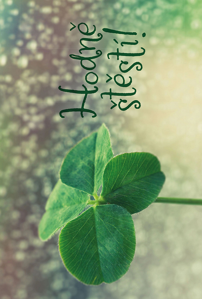 Čtyřlístkové přání k narozeninám, svátku, životnímu úspěchu nebo jen tak pro radost s textem na titulní straně Hodně štěstí! Vnitřní strana je zdobena motivem z titulky s textem: Přeji ti nekonečné štěstí a spoustu krásných chvil! Není baleno v igelitu, součástí je bílá obálka, rozměr 17x11,5cm.