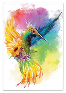 Blahopřání malované akvarel - kolibřík. Přání je vevnitř zdobeno motivy z titulní strany s textem Všechno nejlepší!. Baleno v bílé obálce. Rozměr 19,5x13,5cm.