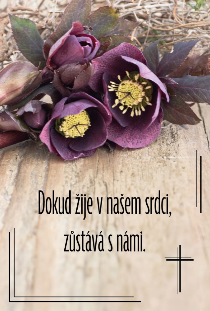 Vyjádřete kondolencí upřímnou soustrast a soucit pozůstalým. Kondolenční přání Vám zajistí důstojné rozloučení s Vaším blízkým člověkem. Text na titulce: Dokud žije v našem srdci, zůstává s námi. Vnitřní strana zdobena motivem z titulky s textem: Mé srdce je s Vámi v tuto těžkou dobu. Ať Vás obklopuje láska a podpora blízkých.