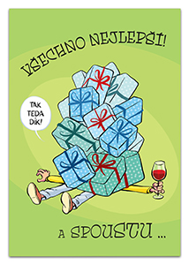 Vtipné blahopřání k narozeninám. Přání je vevnitř zdobeno barevnými motivy z titulní strany. Nemá předepsaný text. Baleno v bílé obálce. Rozměr 19,5x13,5cm.