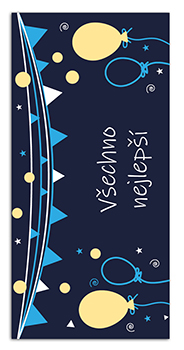 Přání na peníze s bílou obálkou s textem Všechno nejlepší. Přání je vevnitř zdobeno motivem z titulní strany. Rozměr 19,5x10cm.