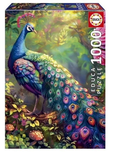 Krádně barevné puzzle s motivem páva, 1000 dílků.