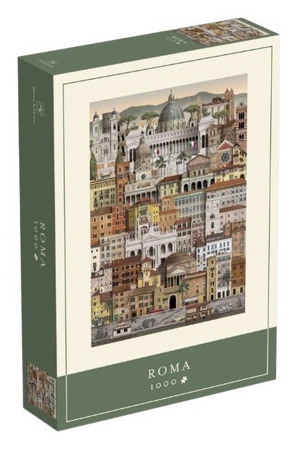 V této skládačce je Řím rozdělen na 1000 dílků. Poznejte památky italského hlavního města při skládání tohoto puzzle a prozkoumejte město kousek po kousku. Kromě puzzle je součástí balení také plakát s motivem skládačky a seznam všech vyobrazených budov. Rozměry ve složenémstavu 50 x 70 cm.