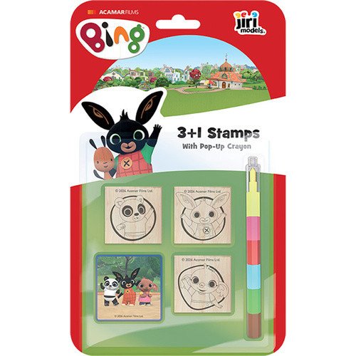 Set obsahuje 3 snadno uchopitelná dřevěná razítka, barevnou podušku s oblíbeným motivem a šestibarevnou skládací voskovku pro vybarvování.