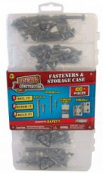 Sada náhradních vrutů a hřebíků v praktickém úložném pouzdru.